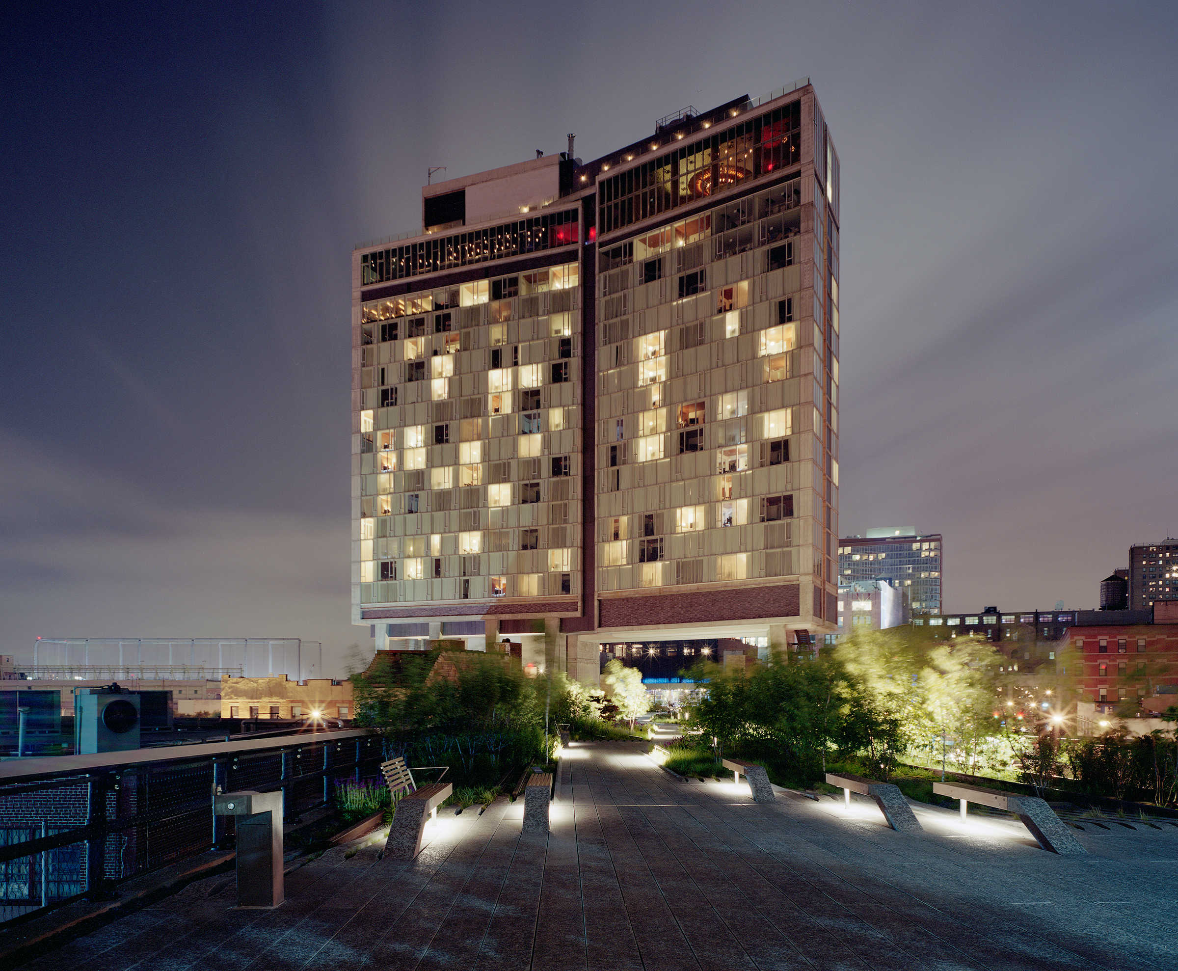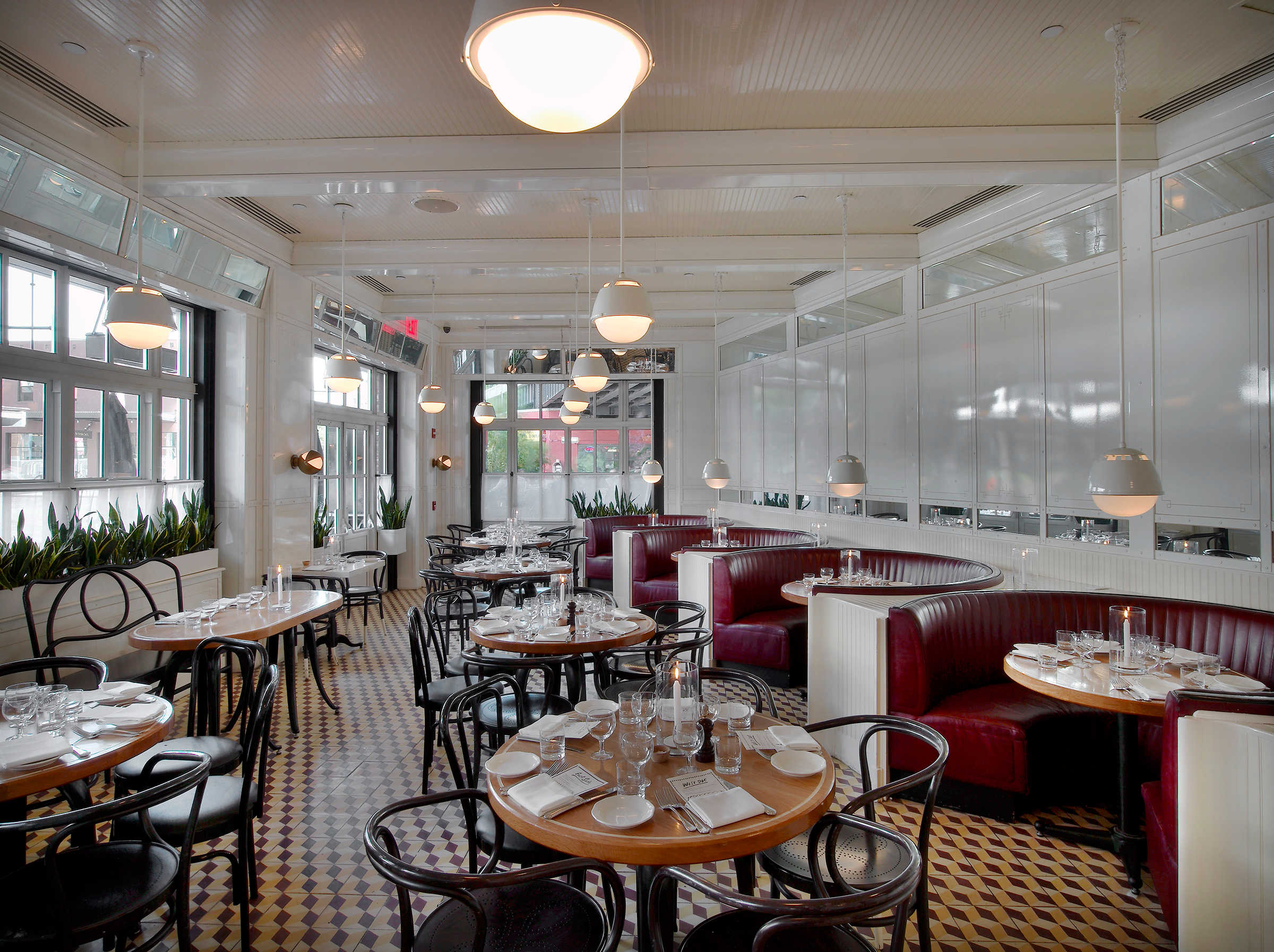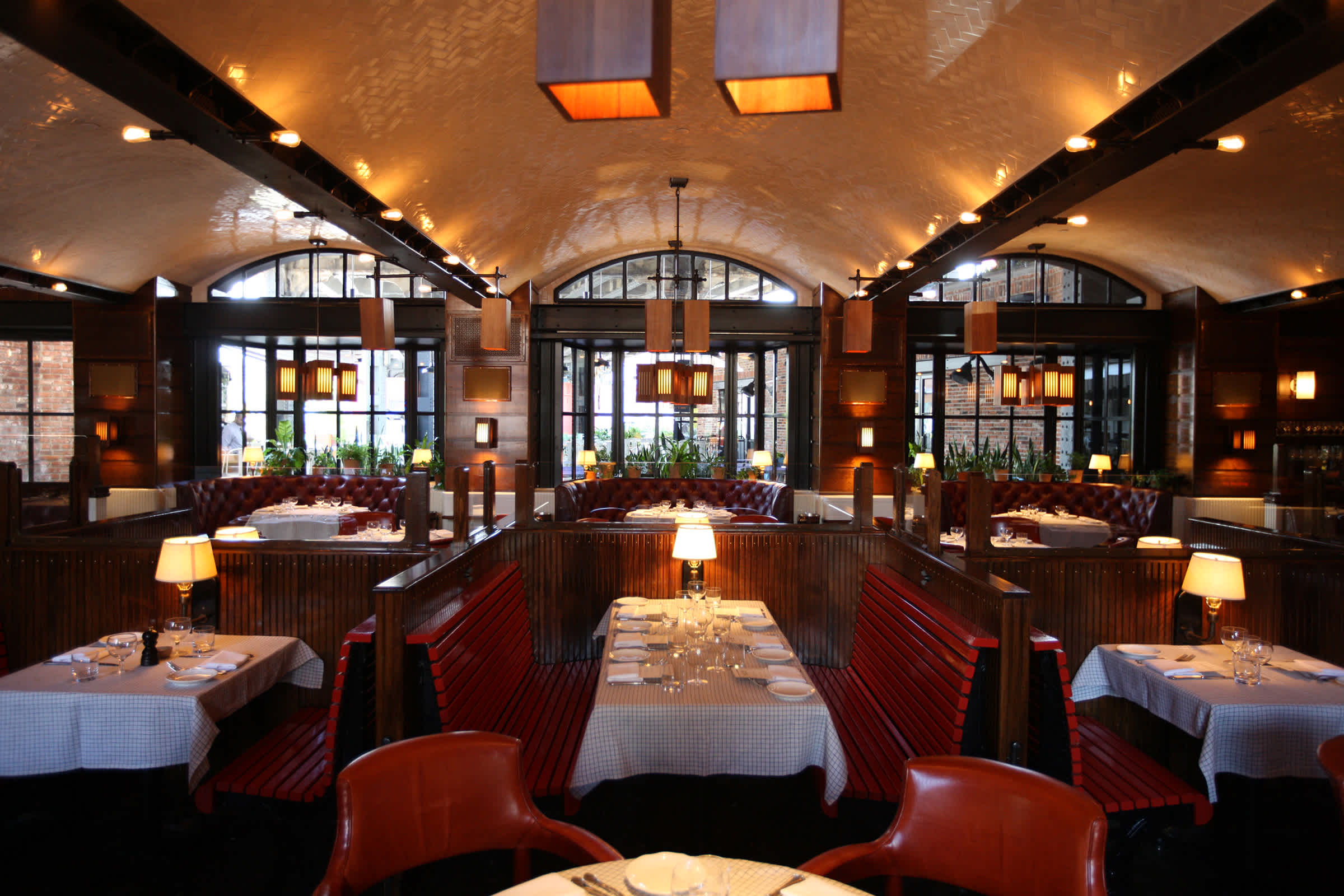 By contrast to the Brutalist concrete form of the Standard Highline building that rises eighteen stories above the High Line, the new restaurant, which is set beneath the High Line’s trellis, was designed in brick by Roman and Williams to respond to the context and history of its neighborhood.
