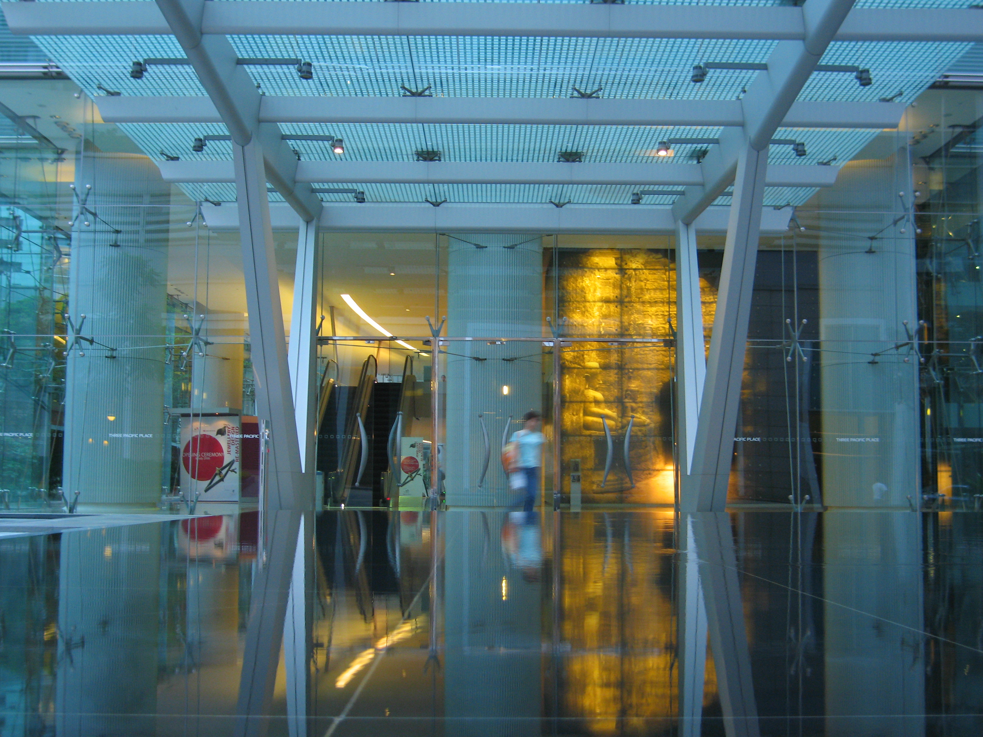 As the new phase of One and Two Pacific Place, Three Pacific Place is a single tower with 34 storeys of offices on top of a multi-level entrance lobby that cascades from Star Street to Queen's Road East. The entrance lobby is enclosed by glass walls on a cable net system, the first of its kind in Hong Kong. Carparking is provided in three basement levels. The development will be connected to Admiralty MTR Station and to Pacific Place via a proposed 300m long pedestrian subway.