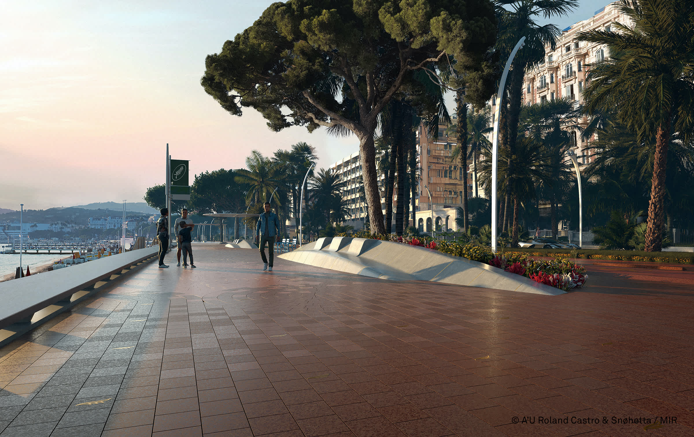 The project to redevelop the Croisette, a world-renowned promenade in Cannes, is the result of a collaboration led by the Atelier d'Urbanité Roland Castro and Snøhetta, associated with WSP, L'Observatoire International, JML Water Feature Design, Manifesto, Transitec and Cronos Consulting.