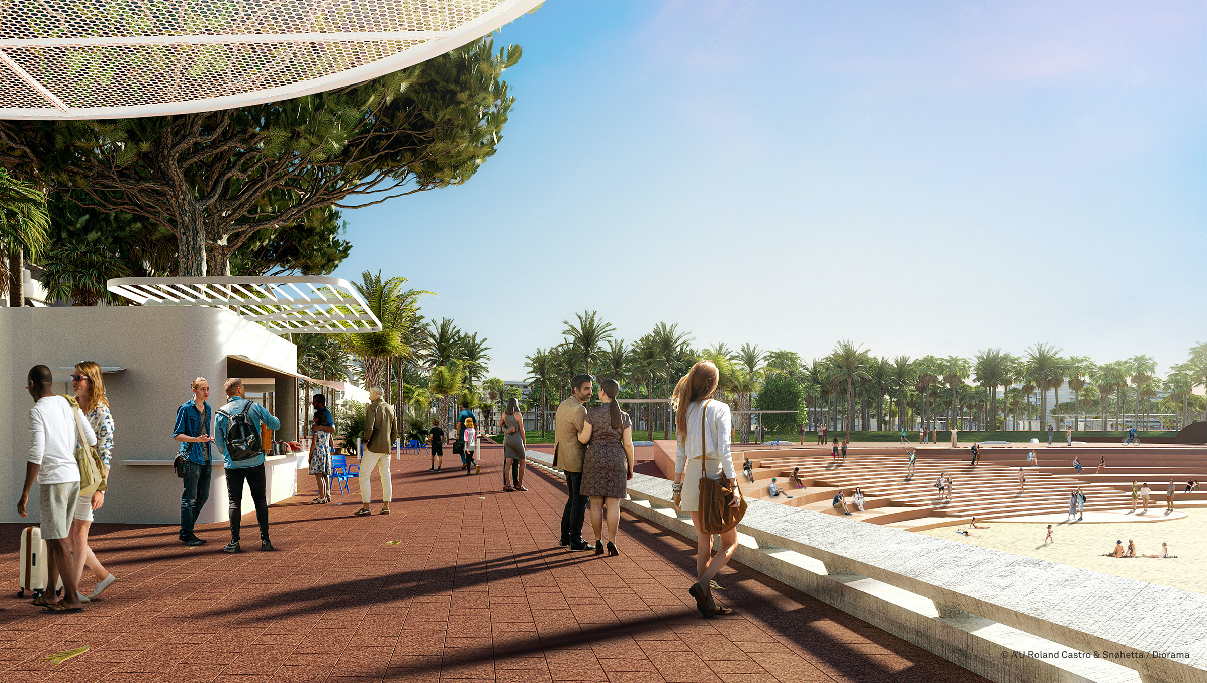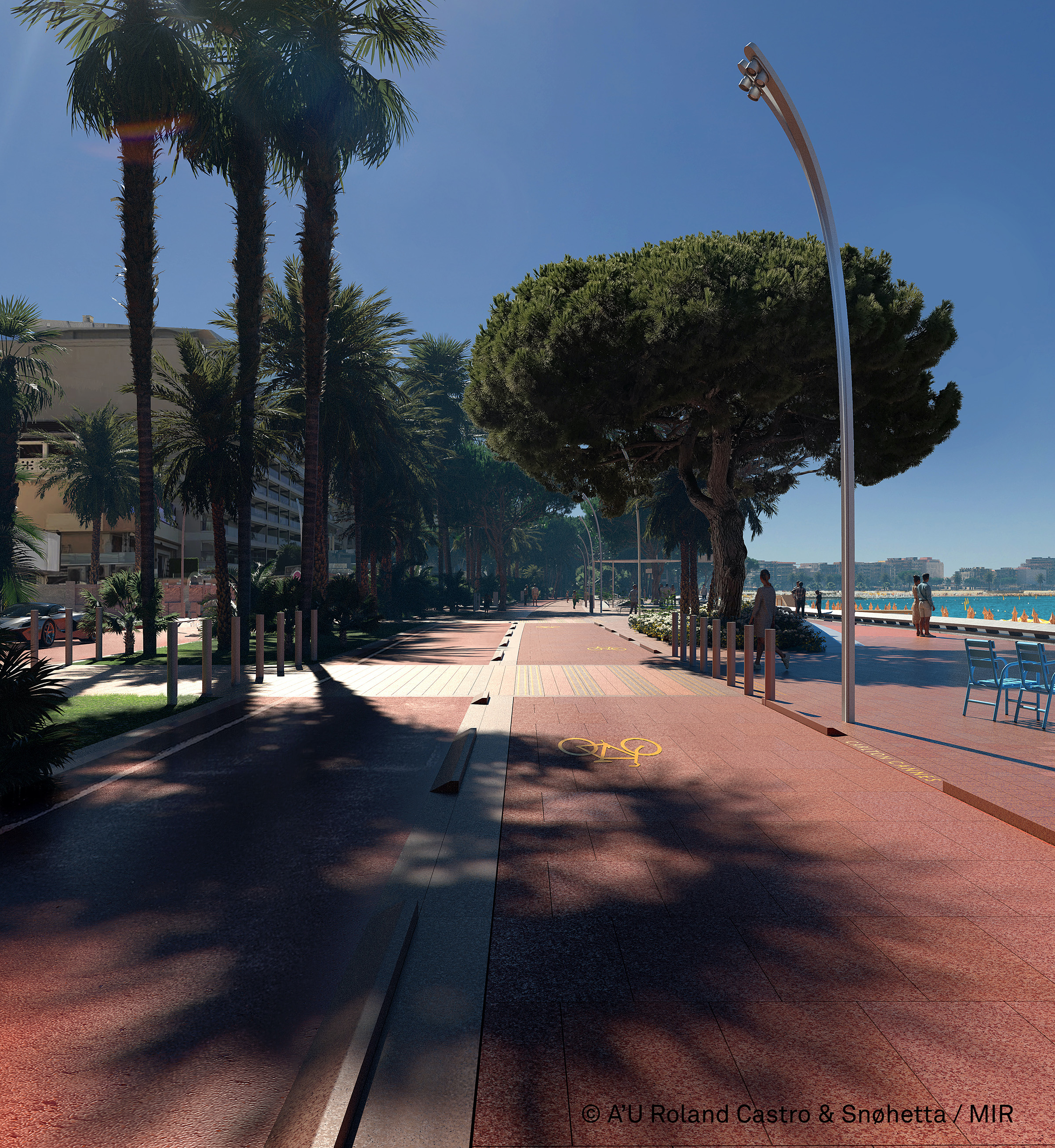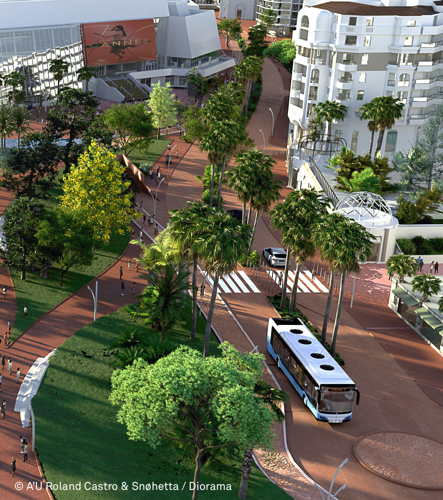 The project to redevelop the Croisette, a world-renowned promenade in Cannes, is the result of a collaboration led by the Atelier d'Urbanité Roland Castro and Snøhetta, associated with WSP, L'Observatoire International, JML Water Feature Design, Manifesto, Transitec and Cronos Consulting.