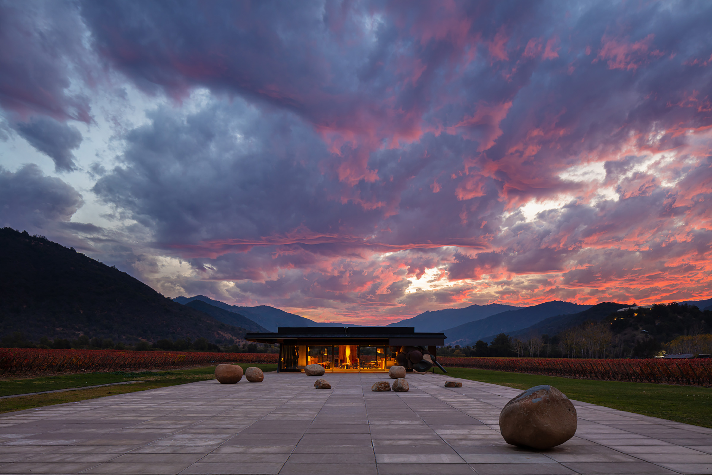 Carrie and Alexander Vik, embarked on an architectural competition of Chilean architects in 2007, snd ultimately selected Smiljan Radic (in association with Loreto Lyon) as the principal architect and designer for his inspired and winery design. After the selection of Radic, the VIK team spent three years refining and improving the original design concept and materials. Set amongst the mountains and sweeping valleys, with the soaring Andes in the distance, the winery has been thoughtfully designed to have minimal impact on the landscape and implemented the most cutting-edged technology while also striving to create a unique design and be operationally efficient.