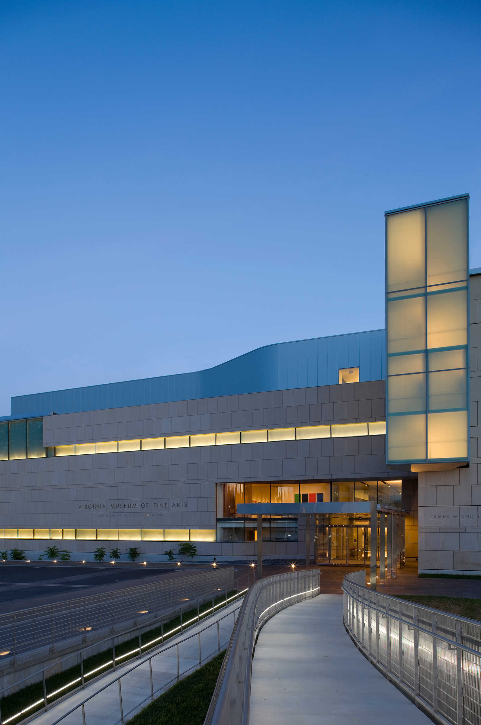 Since opening in 1936, the Virginia Museum of Fine Arts has developed an art collection of global scope and international significance. Designed in collaboration with Rick Mather of London, England, the expansion added 100,000 square feet of new space to the existing 240,000-square-foot museum, and increased previous gallery space by 50 percent. A new atrium connects the new building with two existing wings and opens onto a new library, museum shop, café, and galleries. The atrium culminates in a 40-foot-high glass wall overlooking Richmond’s historic Boulevard to signal the purpose of the Museum to the City. A new sculpture garden, designed by Olin Partnership, stitches together the entire museum campus and rises as a sloped lawn to a roof garden over submerged visitor parking.