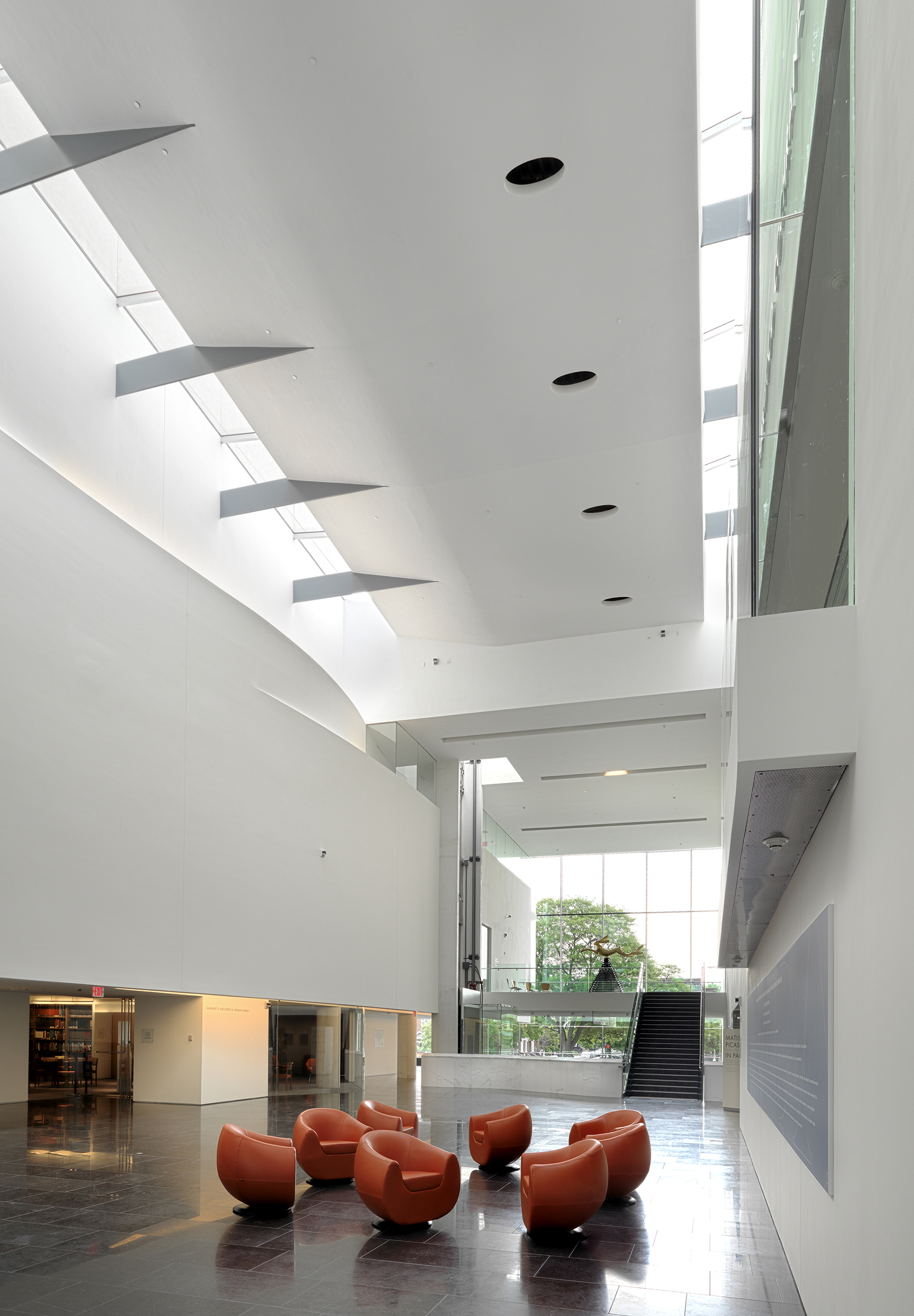 The expansion adds more than 100000 sqf to the existing 240000 sqf building. The additional program includes a large sculpture garden, extensive new galleries, educational facilities, restaurant, cafe, library, administrative offices, and a landscaped, terraced parking deck.