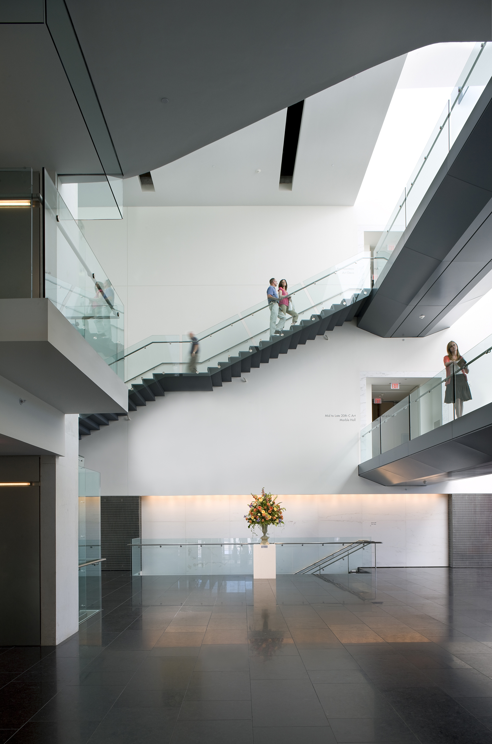 Since opening in 1936, the Virginia Museum of Fine Arts has developed an art collection of global scope and international significance. Designed in collaboration with Rick Mather of London, England, the expansion added 100,000 square feet of new space to the existing 240,000-square-foot museum, and increased previous gallery space by 50 percent. A new atrium connects the new building with two existing wings and opens onto a new library, museum shop, café, and galleries. The atrium culminates in a 40-foot-high glass wall overlooking Richmond’s historic Boulevard to signal the purpose of the Museum to the City. A new sculpture garden, designed by Olin Partnership, stitches together the entire museum campus and rises as a sloped lawn to a roof garden over submerged visitor parking.