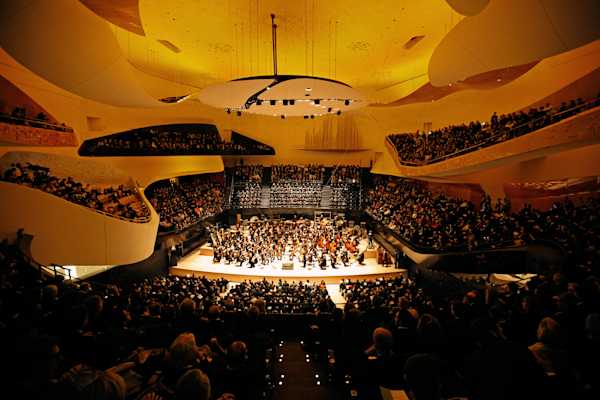 This 2,265 seat concert hall features an undulating, steel exterior punctured by interior light, bringing interior activity outside.