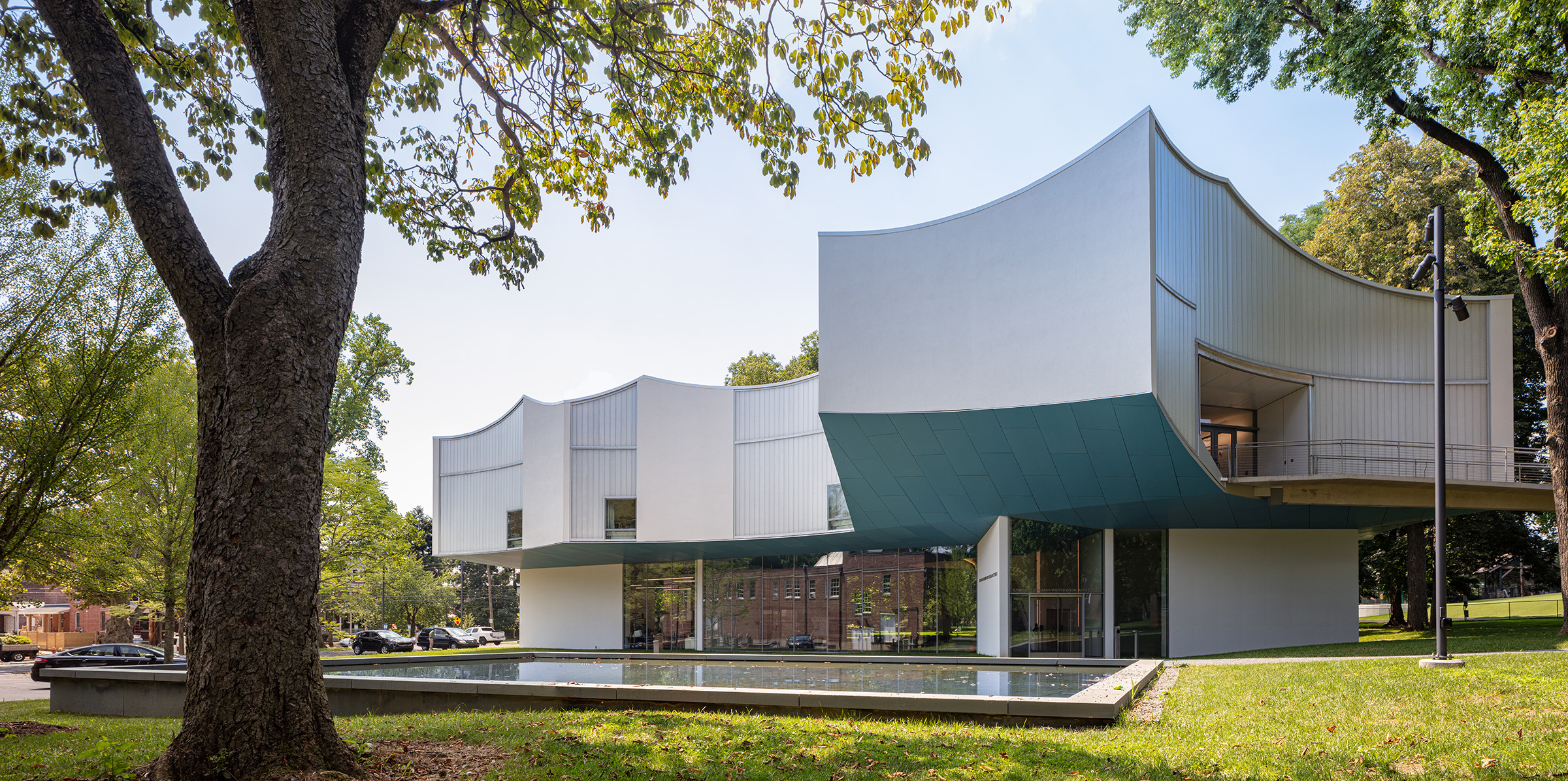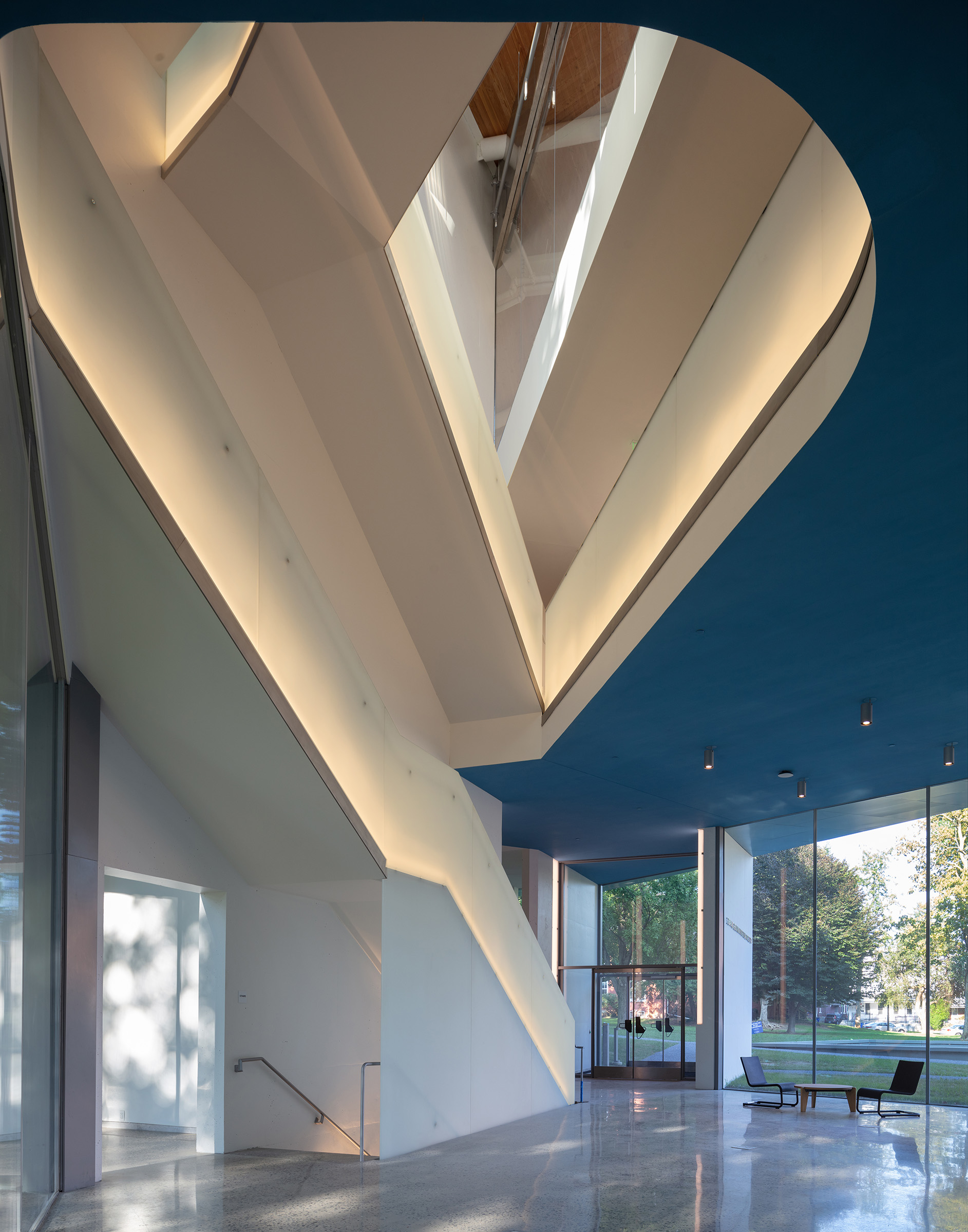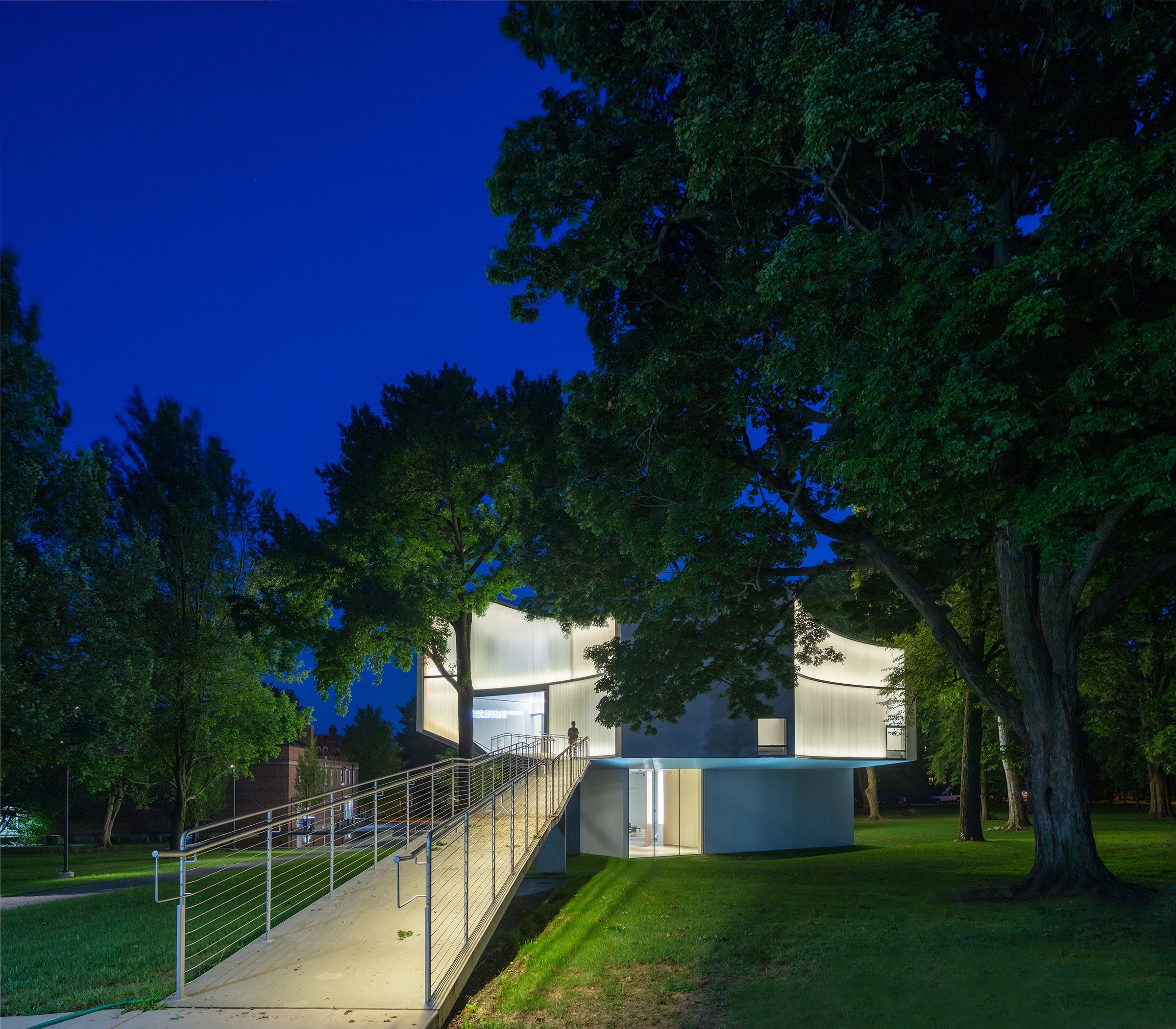 On the campus of Franklin & Marshall College, the Winter Visual Arts Center is nestled among two-hundred-year-old trees. The building’s concave curves conform to the placement of the historic trees, carving out an intimate setting for the structure by Steven Holl Architects. L’Observatoire International’s multifunctional lighting concept celebrates the distinctive geometry of the building’s architecture while establishing the Visual Arts Building as a thoughtful, contextual addition to the campus.